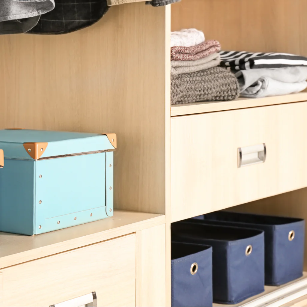 Your wardrobe probably has a few dust bunnies and cobwebs lurking in the corners. Get out the trusty vacuum cleaner or a duster and give it a good clean. Don’t forget to wipe down the shelves and, if you have drawers, give those a once-over too.