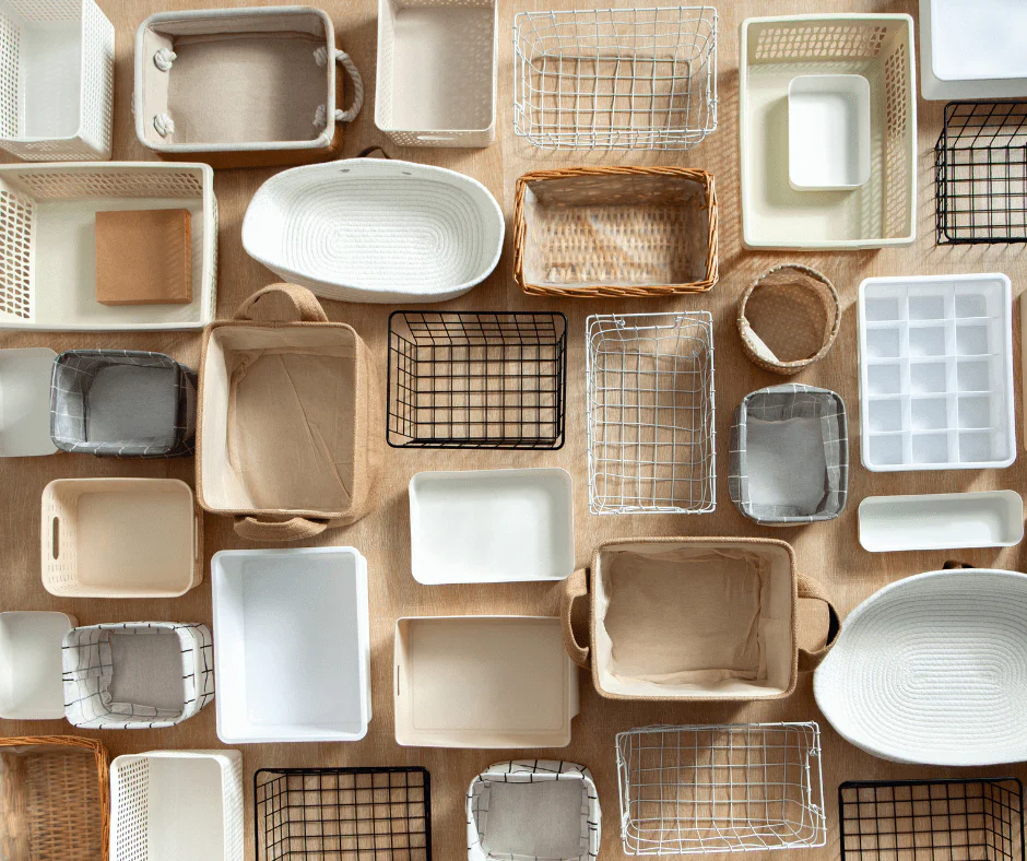 Equally, make us of dead space such as underneath sofas and beds with wider but lower storage boxes that can be easily hidden and pulled out when needed.