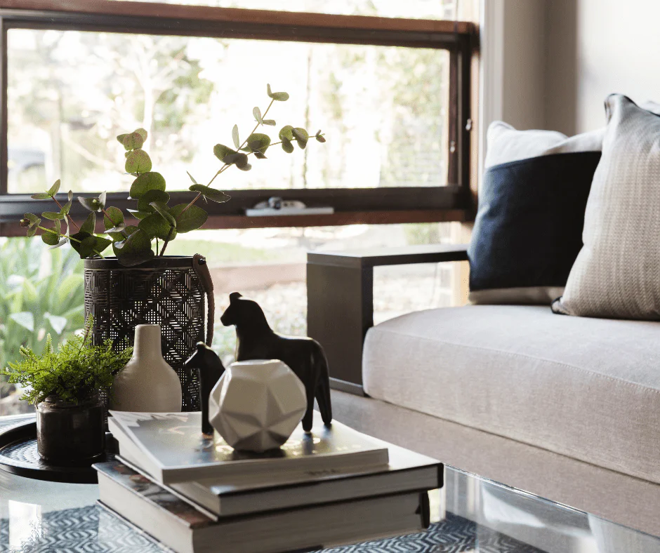 14. Styling your coffee table so it looks nice but is also functional is an easy yet effective secret. Something as simple as rearranging the unsightly pile of magazine into a visually appealing selection can make a big difference!